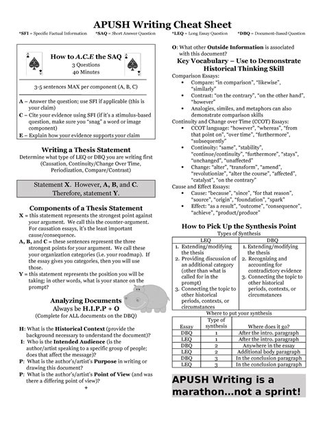 Apush Writing Cheat Sheet - APUSH Writing Cheat Sheet *SFI = Specific